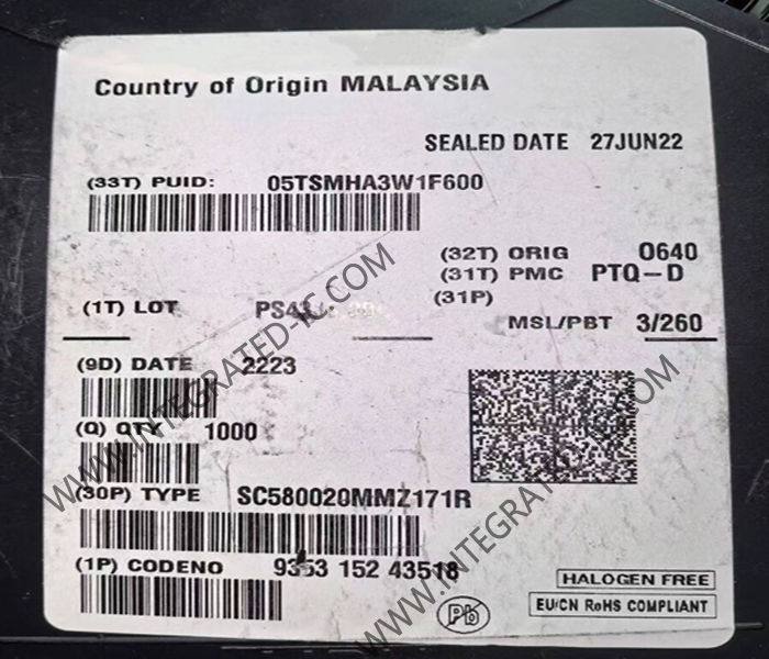 SC580020MMZ171R es un chip procesador integrado de alto rendimiento. Diseñado para aplicaciones integradas exigentes, este chip combina potentes capacidades de procesamiento con una eficiencia energética excepcional, lo que lo hace ideal para su uso en control industrial, electrónica automotriz, equipos de comunicación y electrónica de consumo.